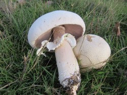 {note 1} Although these Amanitas are edible and quite good I usually heed the advice to by-pass the group because of the dangerous, even deadly, members of the family. Death Cap (Amanita phalloides), for instance is regularly seen hereabouts.
